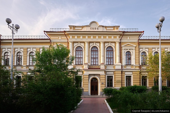 Честно, представлял город несколько иначе. И удивился, когда вечером пошел прогуляться по центру. По мимо прочего, тут много старых красивых зданий. Обычно, в наших сибирских городах со старой архитектурой не сильно хорошо. Каменные здания стали появляться в основном на рубеже 19-20вв. А монументальная архитектура советского периода не всех коснулась одинаково, либо уже находится в плачевном состоянии.