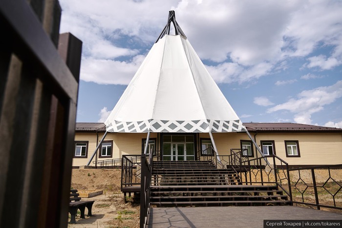 Третья - зайти в Этно-археопарк "Сухотино". В 2023 на Титовской сопке решили сделать этно-археопарк "Сухотино". Пока есть центральное здание музея в виде чума, лестница на крутом подъеме, лавочки, беседки и немного сопутствующей инфраструктуры. Также планируют строительство этнодеревню, где хотят воссоздать жилища эвенков, бурят, семейских староверов - такое единое культурное полотно, которое отображало бы традиционную культуру Забайкалья.