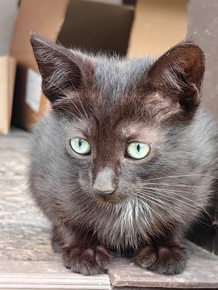 Красавица, зеленоватая багира, характер королевы, но при этом любит мурчать на руках. Окрас черно-коричневый, фото не передает.