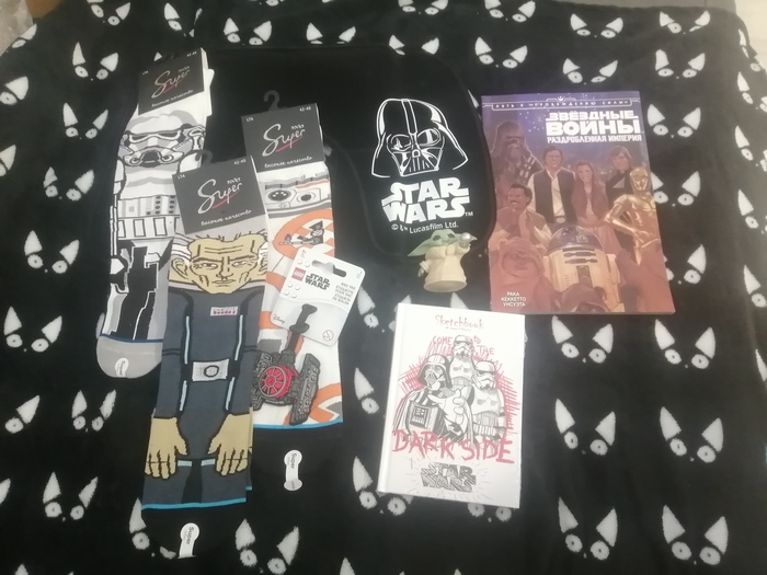Признаюсь, что с работой я закрутился и забыл о том, что участвую и вспомнил, когда пришло напоминание от внучки о подарке и в спешке набирал контента по Star Wars (книга про Трауна и большой комикс о Старой республике) и решил на этот раз добавить конфет Самарской шоколадной фабрики (не грильяж, а ассорти разных), мгнитов и вкусностей. Вышло на 2,5 кило и отправил. Внучка оказалась довольна, но то что не написала пот - это не важно по мне и опционально