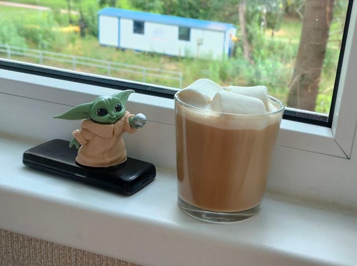 Грех не сделать милую фотку где он к маршмеллоу в кофе ещё и бомбу кладёт