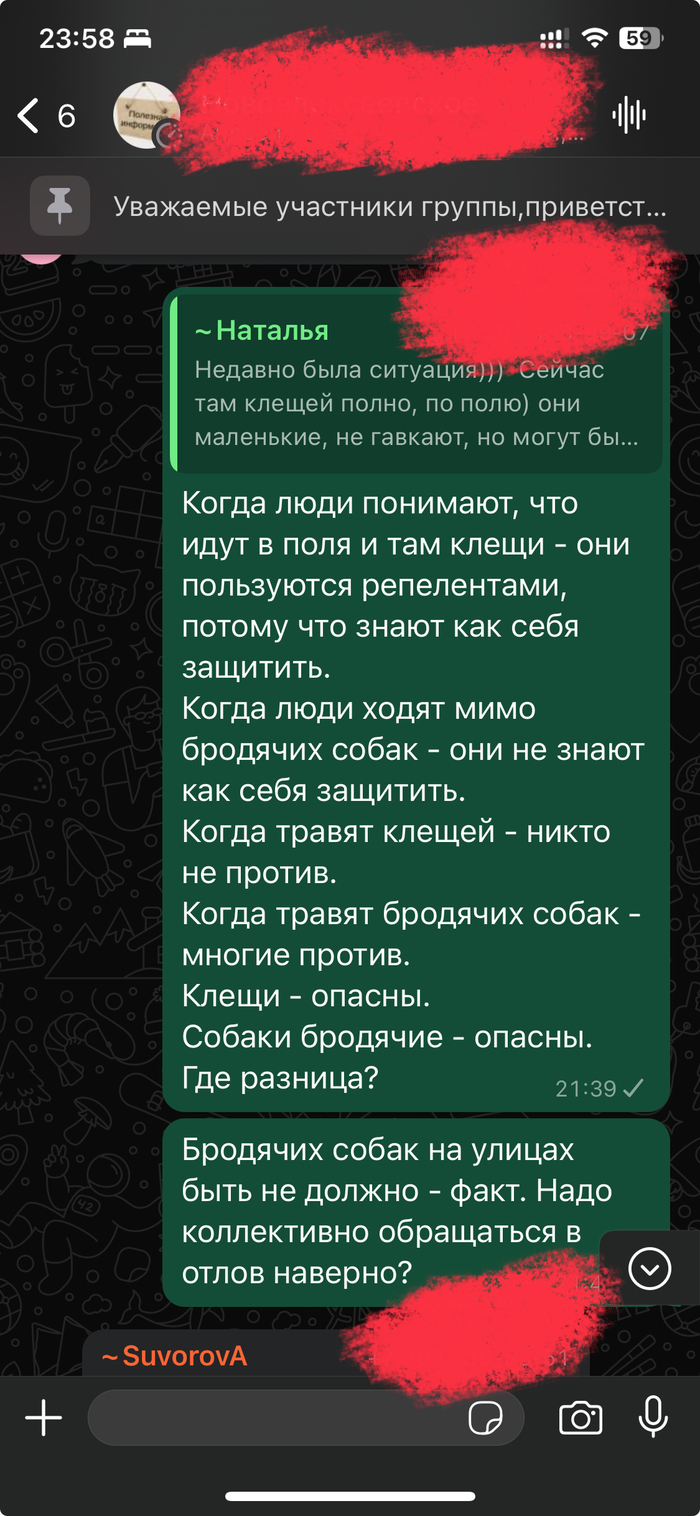Дальше в нашем селе бездомные собаки покусали ребенка. Потом второго. И в чате та же зоошиза: