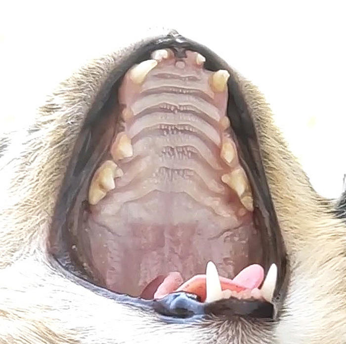 Сделать с этим мы ничего не можем, это немного мешает Лапе есть влажный корм, но пить и хрустеть твердым кормом – не мешает. Надеемся, оно так и будет.