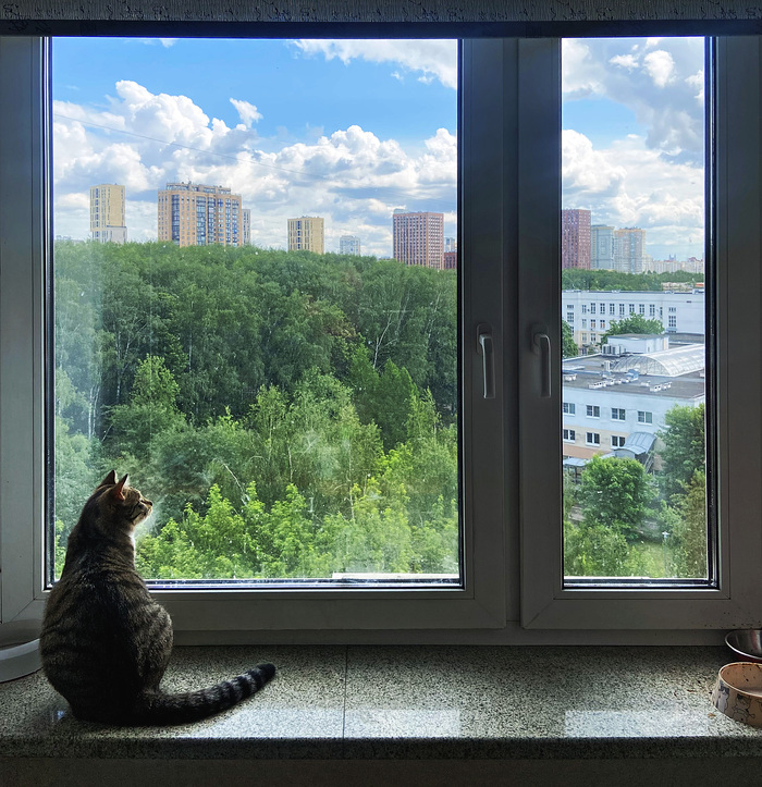 Заприметили мы ее еще в начале прошлого лета. Не сказать, что ей на улице жилось плохо. Уж получше многих, с такой-то внешностью. Она явно была обеспечена и объедками, и вискасом. Естественно, как любая московская уличная кошка, с людьми она держала солидную дистанцию и драпала при любой попытке приблизиться. Она заведовала довольно обширным лесом за общежитием и могла там легко скрыться. А еще она знала, что через прутья металлического забора она, если что, пролезет, а человек или псина – нет. Мы навещали и кормили ее почти каждый день. Настал момент, когда она начала появляться из леса каждый раз, когда мы приходили. Мы точно запомнили ее по четырем точкам на лбу, а она точно запомнила нас, но приблизиться и погладить ее ни разу не удавалось. Естественно, у нее были свои печали – ее гоняли дети и собаки. Оставалось только дожидаться того дня, когда она выбежит на дорогу и встретит обычную кошкину смерть под машиной. Поэтому в один из последних летних дней, стоя под деревом, на котором сидела наша кошечка, в очередной раз загнанная туда собаками, моя жена торжественно и лично пообещала ей, что заберет ее домой.