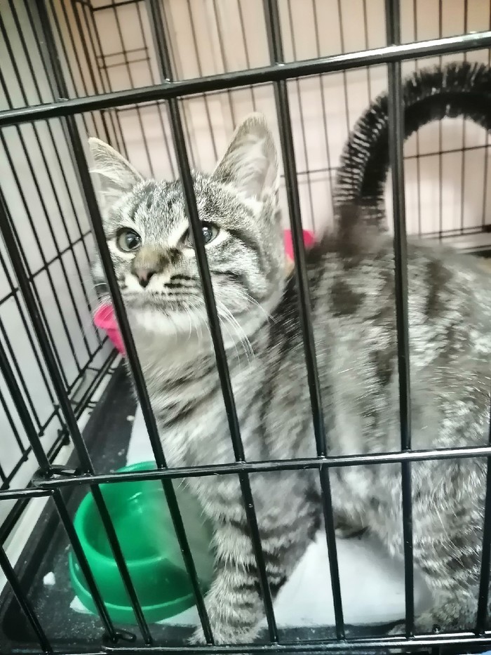 Саша (так как мы её забрали в 4 месяца, вот фотка из ветклиники, где мы её впервые увидели)