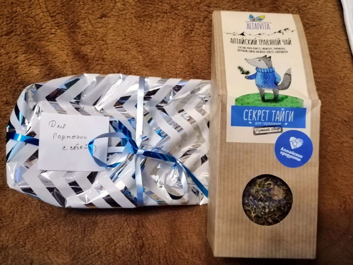 Сама отправляла подарок аж в Республику Саха (Якутия), а вот моя «Снегурочка» из г. Каменск-Уральский Свердловской области. Моя родина – Средний Урал. Я родилась и провела детство в г. Среднеуральск. Так что вдвойне приятно получить новогодний привет из родных мест, а еще подарок успел к моему Дню Рождения. Ну сплошные радости!