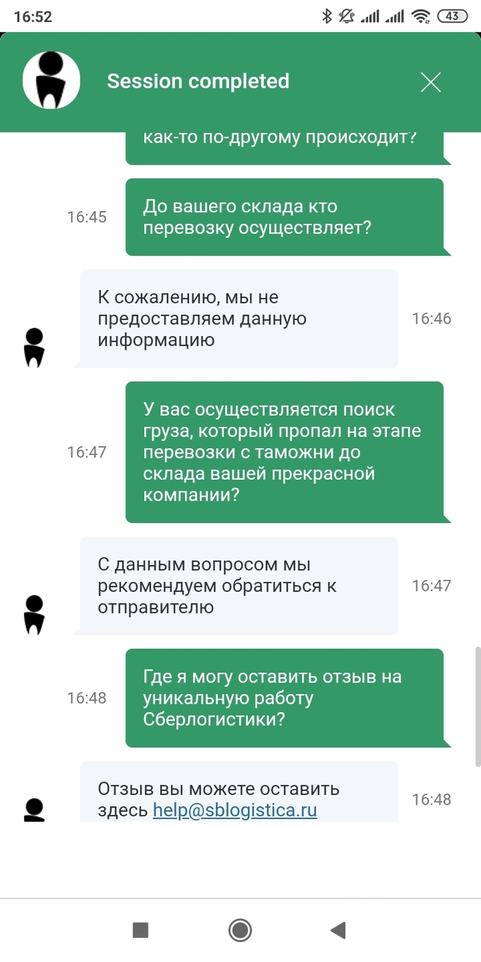 Слышала плохие отзывы про Сберлогистику, но пару раз с Алиэкспресс уже ими привозили заказы. Долго, но да и ладно. Но тут жду уже очень долго, решила пообщаться с перевозчиком. Результат - кабздец, товарищи. Скриншот разговора прилагаю.