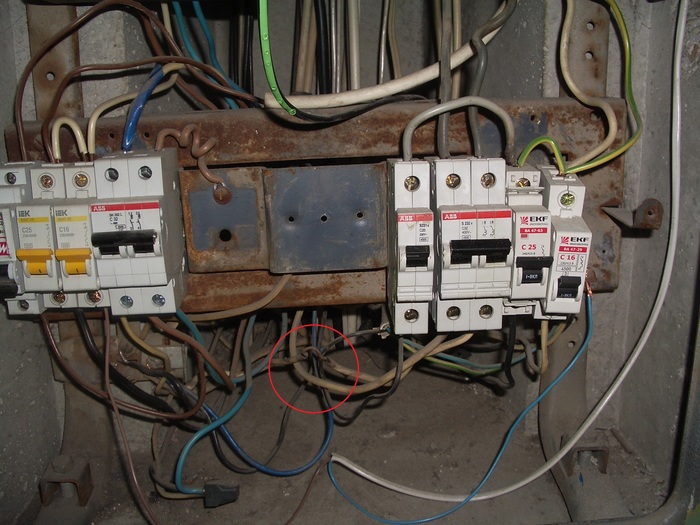 Особо порадовал отгнивающий ноль и желто-зеленый фазный провод. Землным проводом фазу прокинул электрик, менявший счетчик - из каких-то ЖКХ структур.