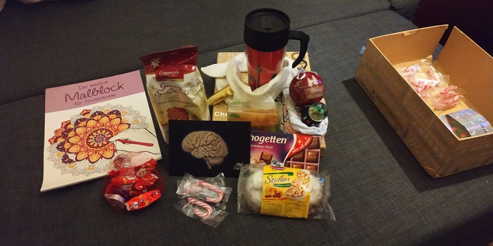 Вчера пришлось сходить на почту и внезапно без извещения оказалась посылка из Берлина на 2кг. Это было так круто, что пошла вместе с ней домой вместо работы!!!!