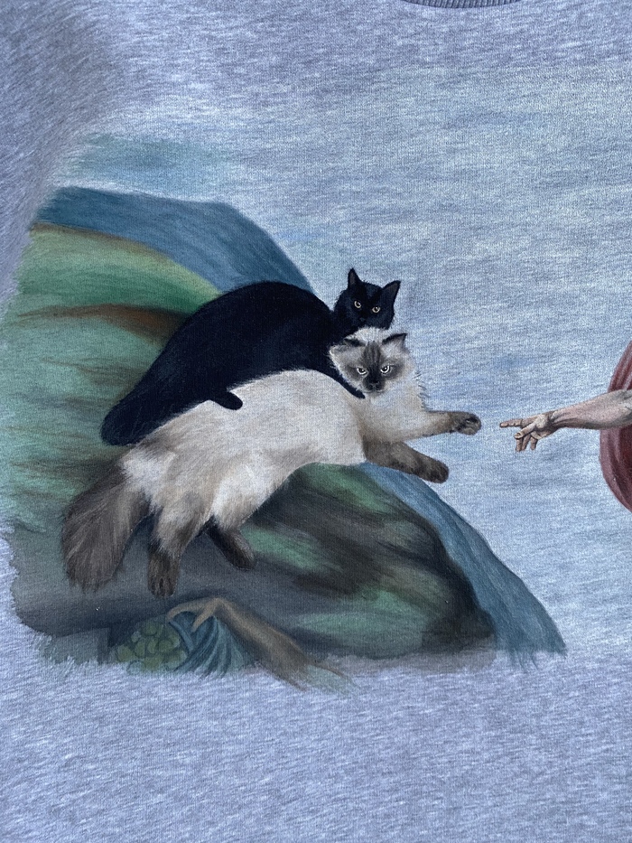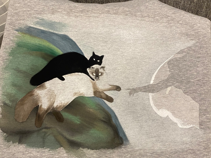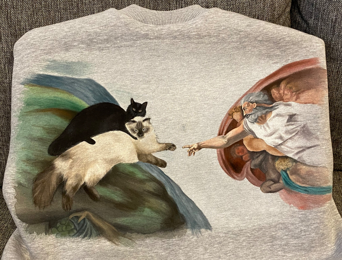 Берём фотку любимых котов, краски по ткани и кофту. Раз раз и готово! Ну а если серьезно, то процесс работы описан ниже