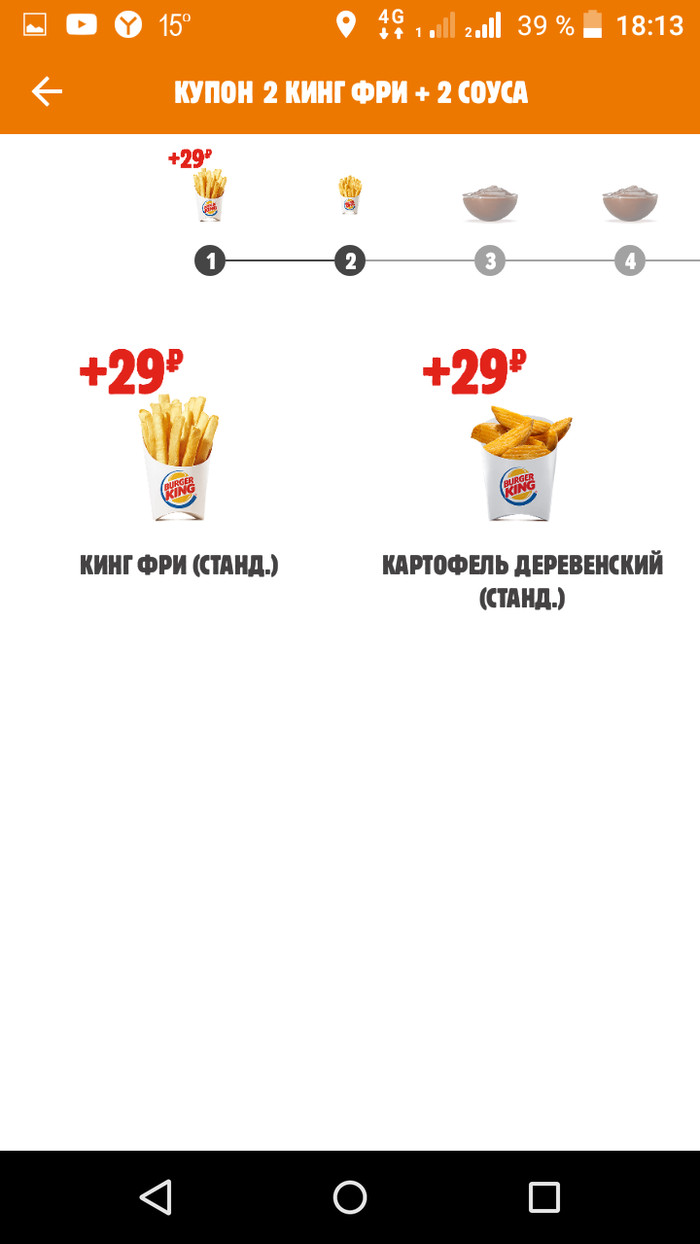 Не кидайте камнями пожалуйста, как тут говорят чукча не писатель. Пишу впервые. Итак начнем. Решили мы с женой заказать сегодня в Бургер Кинге Тольятти через их приложение заказ дабы не стоять в очереди. Захотелось нам картошечки с соусами к бургерам взять по акции за 129 деревянных.