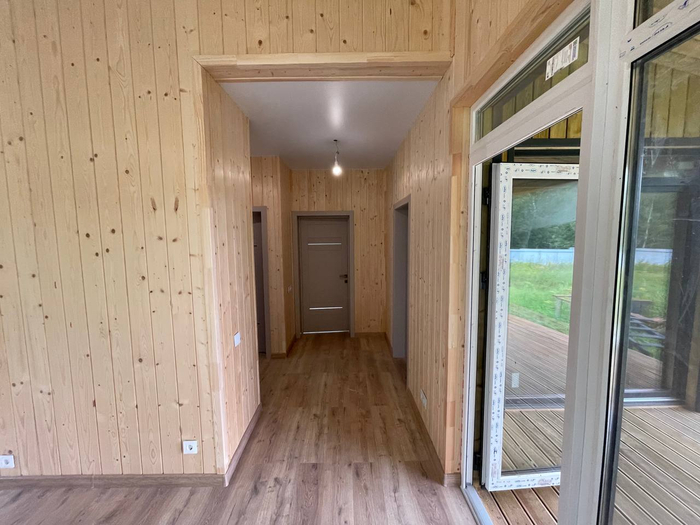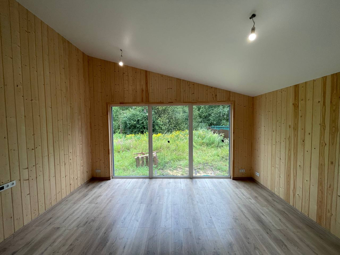 С этими ребятами мне не удалось договориться об отделке наружней. То ли они побоялись, то ли нашли заказ пожирнее. Поэтому я нашел парнишку из Белоруссии, который зашил мне фасад импрегнированным планкеном.