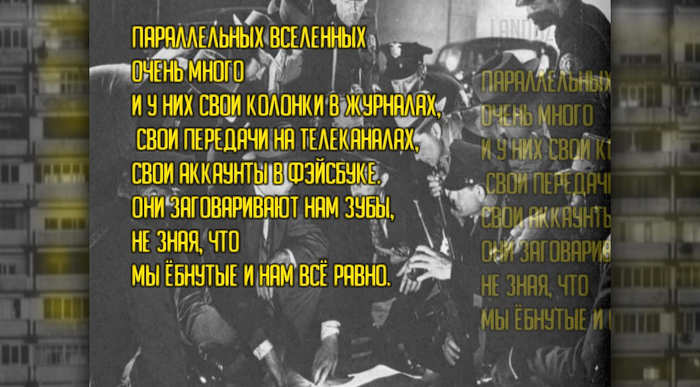 Мы всё прорабатывали вместе. Витя АК — удивительный, Шукшинский персонаж. Абсолютно стихийный. Он написал текст песни за 10 минут. Потом была Триагрутрика, у которой было около 50 итераций — и это было вообще не то.