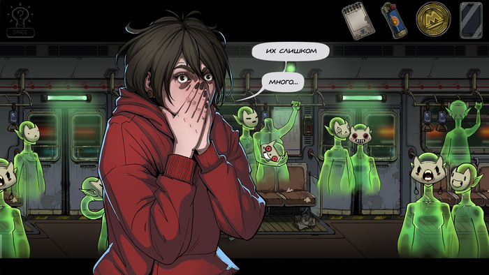 Значительная часть игры - интерактивная история. Такое название жанра мне нравится больше, чем “визуальная новелла”. Игра наполнена комиксами. Как в Макс Пейне, да-да. Возможность взаимодействия с иллюстрациями, мини-игры, активные зоны на статичных локациях - все это нужно показать в трейлере. Выбрать самые заметные механики, а не “нажми одну кнопку и отдыхай дальше”. Сюжет игры тесно сплетен с музыкой и ее влиянием на героев, поэтому я выбрала для трейлера музыкальную мини-игру.