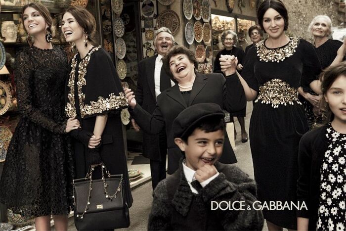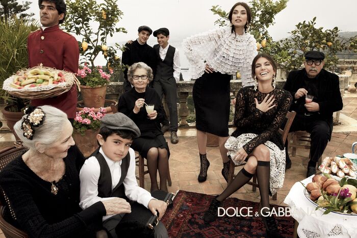 Дольче и Габбана запустили серию модных фотографий, стилизованных под традиционные итальянские семьи - тут люди разных возрастов, одетые, правда, в самое стильное и "от кутюр". Но видно же, насколько очаровательна эта традиция!
