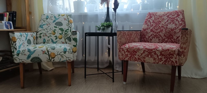 Вот в целом и все) сама перетяжка заняла у меня один день, дольше длились подготовительные работы, но там и перерывы между подходами были длинные). Теперь на очереди второе кресло, думаю уже попроще будет.
