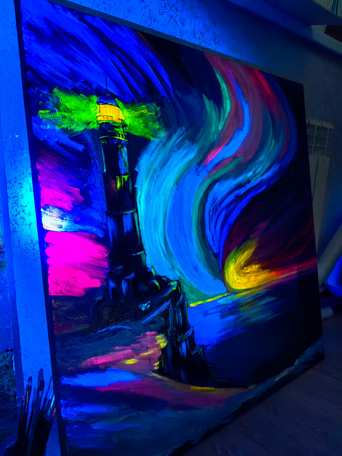 Использовала флюресцентные акриловые и просто акриловые краски.