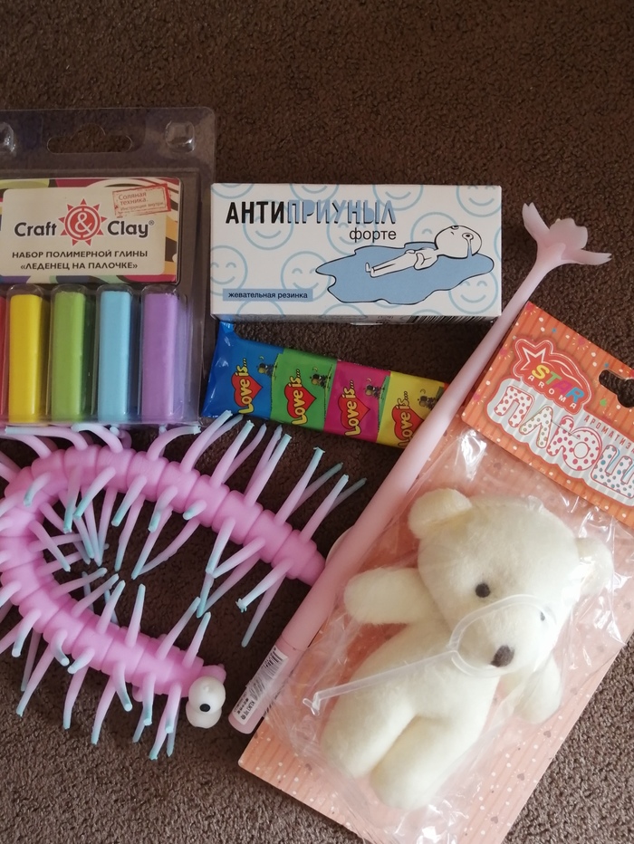 Открываю, а там много всего прикольного. Куча всяких сладостей, леденцы, газировка, мне правда нельзя такие напитки, так, что я их сестре отдала))