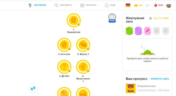 В приложении есть всякие ачивки для тех кто учится, разные лиги и рейтинги которые, по моему мнению, только мешают обучению, но кому-то может понравится