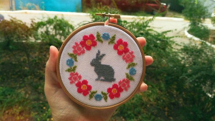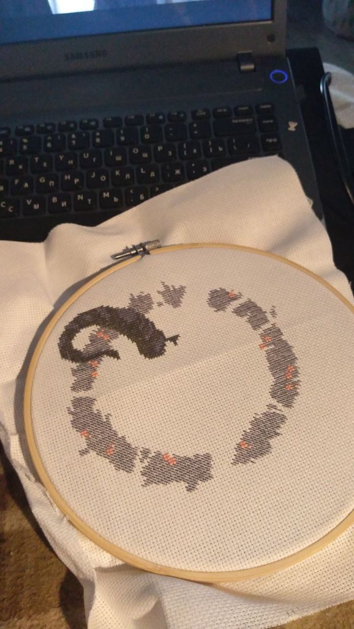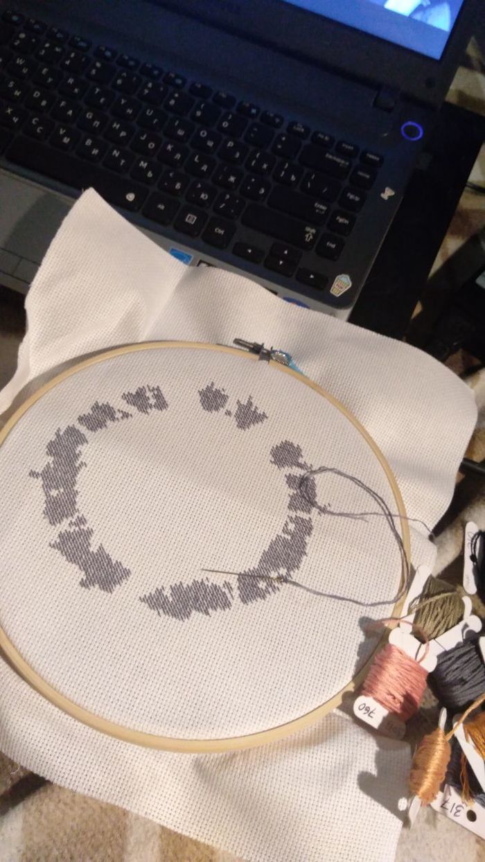 Самое сложное - начать. И не облажаться в количестве крестиков, не пропустить нужное и не добавить ненужное. Знаю, что можно расчерчивать канву или наметать нитью, но для такой маленькой вышивки - было лень.