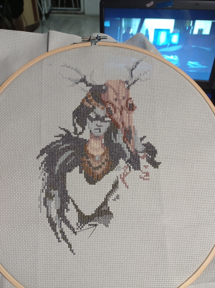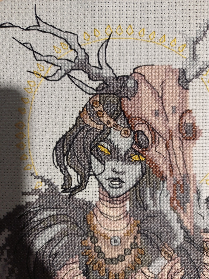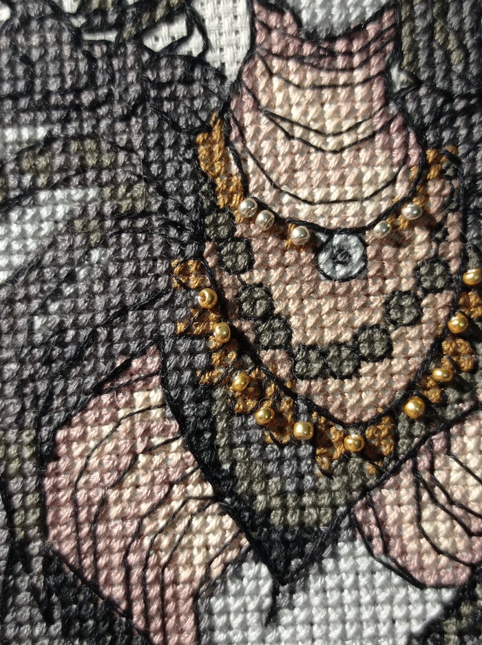 Вот эту закончила буквально только что, очень долго страдала над бэкстичем - максимально неудобно им вышивать по канве для крестика.