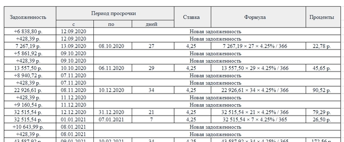 Как видимо ничего мудренного, считаются проценты по ставке ЦБ РФ на момент просрочки и складывает суммы.