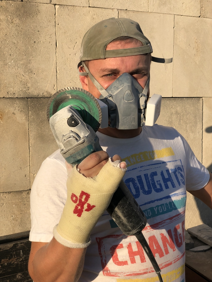 В прошлом посте было много комментариев о защите во время работы... Успокаиваю - я работаю только в респираторе, очках и "ушах". И да, на УШМ нет кожуха т.к. работаю специальным диском на фланце. Мы все так работаем. Диск очень прочный.