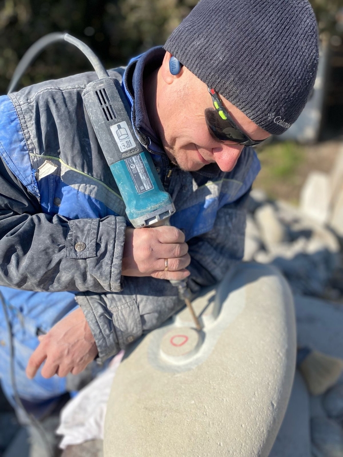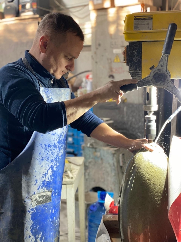 Инструменты: угловая УШМ, прямая УШМ, алмазный диск с фланцем 50 и 115 мм. Скульптурные фрезы. Полировочные диски от 100 до 800. Руки и Белая Магия.