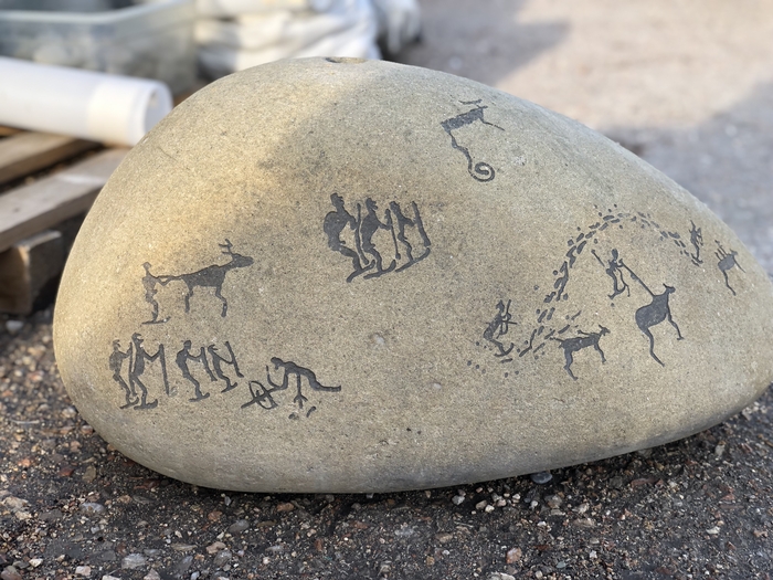 Ну а так как этот персонаж будет жить в Карелии, то попросили добавить к нему петроглифом с Залавруги. Как «два пальца обо асфальт»!
