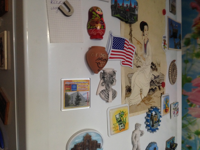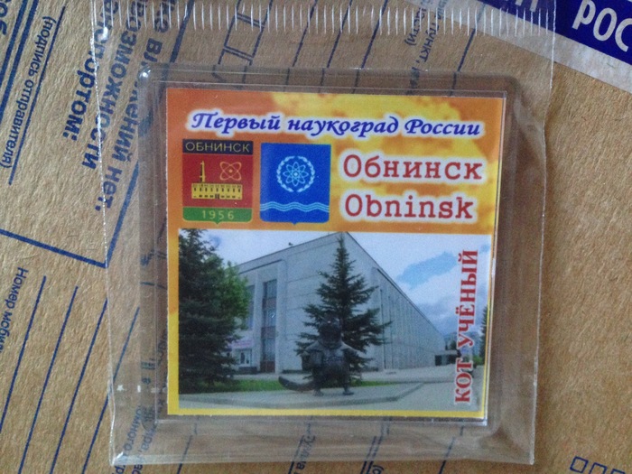Ах да, еще был магнит из родного города Юрия, первого наукограда России, Обнинска, С КОТОМ ^^ Магнит уже висит на холодильнике рядом с другими :)