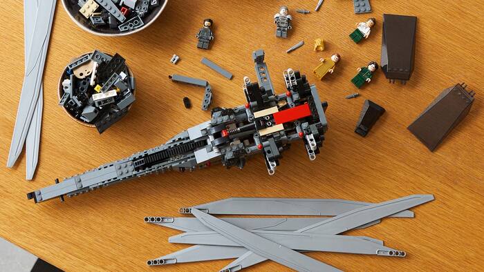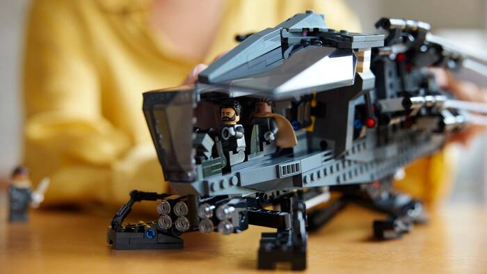 Лего продолжает использовать новый сине-серый пластик на стёклах, почти непрозрачный, также для датской компании печать белым на чёрной ткани/двухстороння печать на ткани - это технологии будущего, поэтому одеяния барона выглядят весьма безобразно с этой белой подкладкой. Естественно, у минифигурок нет печати на руках, а у двух и на ногах, поскольку по летоисчеслению лего сейчас 1999-й год и можно не заморчиваться над детализацией даже в коллекционных наборах. Из плюсов- очень круто сделана механизация крыльев.