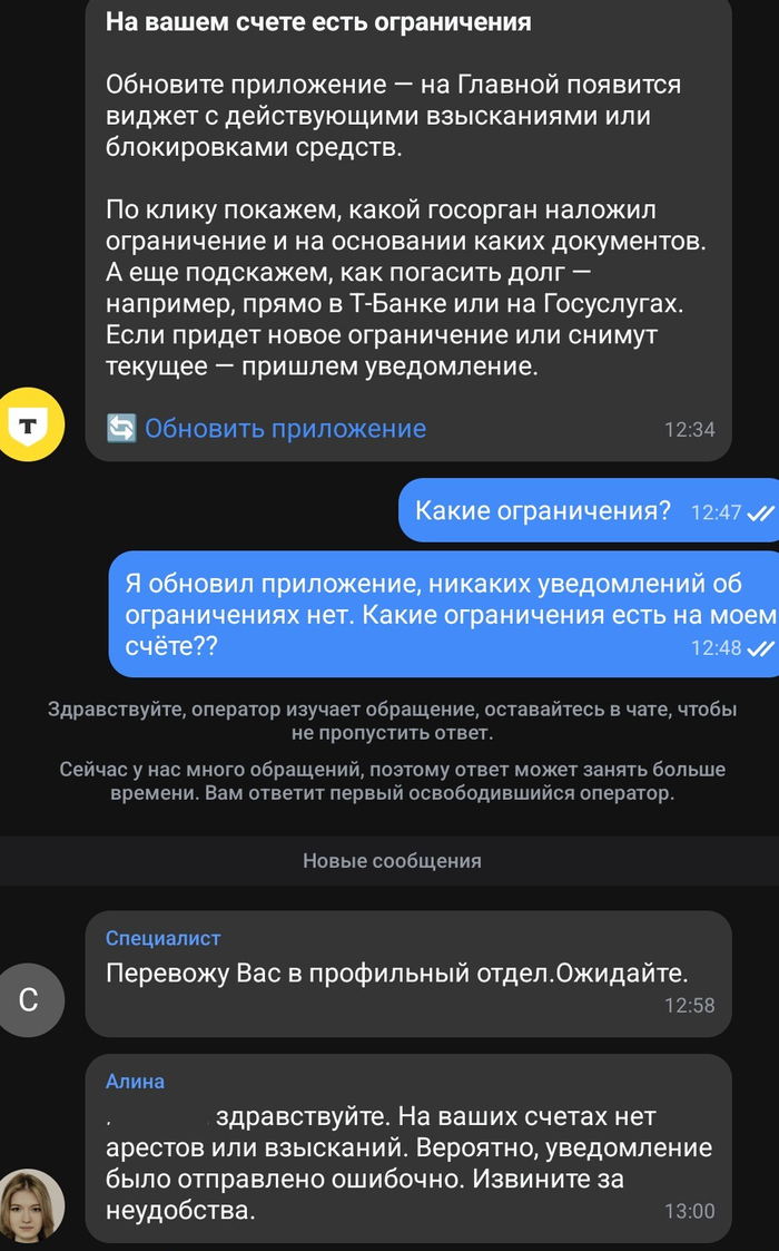 В общем мне пришли уведомления о том, что на моем счету обнаружили ограничения. Поскольку у меня нет штрафов и кредитов (кроме кредита на обучение), я испугался, что на мне какой-нибудь кредит висит, о котором я не знаю.