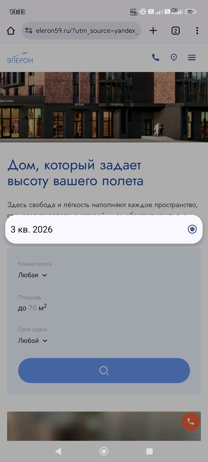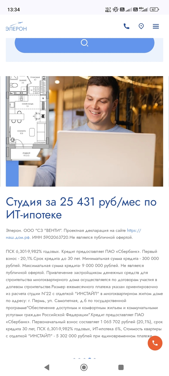Перехожу на сайт - ну, интересно же - аж рассрочка за 30к в месяц в наше время звучит очень неплохо. Зачем-то нарисован самолёт над кварталом. Чтож, ну либо в прифронтовой зоне, либо около аэропорта - понятно, что за цена. (Нет, просто странный дизайн)