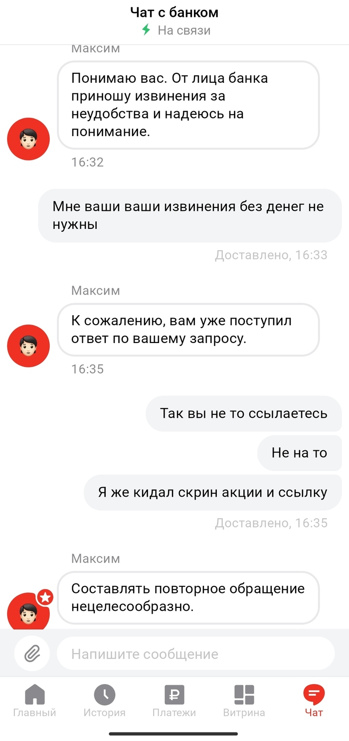 Но и это не помогло потому что сотрудники альфы продолжили долбиться в глаза,на этот раз уже имея ссылку с условиями,опять пишут что я дурак а акция не действует