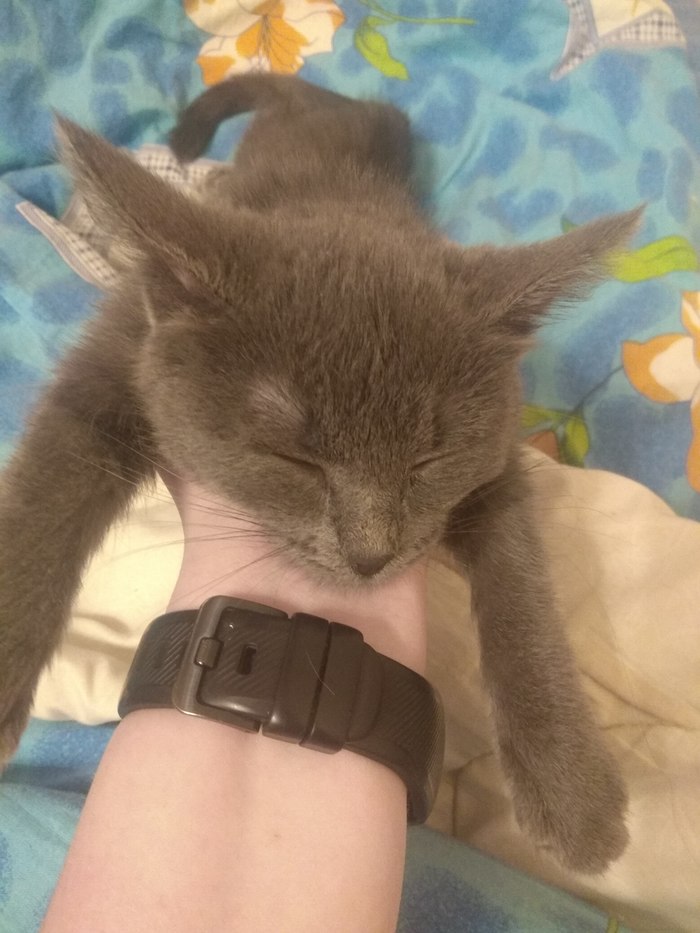 Муж, конечно был «несказанно» рад, но понес комок грязи отмываться в ванну, где нечисть оказалась милой маленькой серой кото-девочкой месяцев трех/трех с половиной от роду.