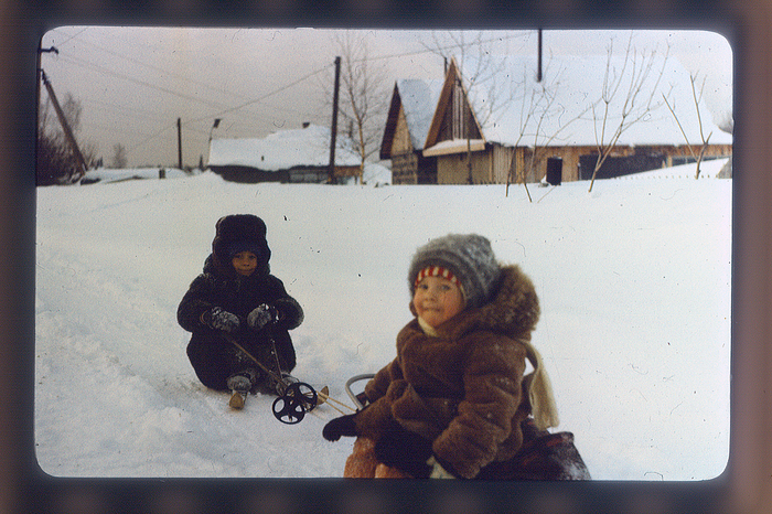 Папа — фотолюбитель. У него есть фотоаппарат Зенит и специальный фонарь красного цвета. Эти снимки он сделал на пленку для цветных слайдов. Потом мы смотрели их на проекторе, который светит на стену.