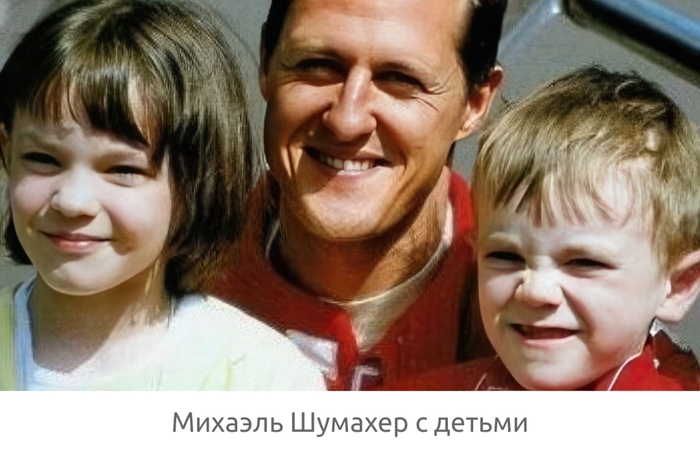 Дети Михаэля и Коринны пошли по стопам родителей и также занялись спортом. Сын Мик Шумахер с 2016-го входил в число автогонщиков европейской «Формулы-3», в 2019 году пополнил ряды пилотов «Формулы-2», затем сменил еще ряд команд. Дочь Джина-Мария серьезно увлеклась конным спортом, стала двукратной чемпионкой мира по рейнингу (другие названия — вестерн или ковбойская выездка). А осенью 2024 года она вышла замуж за давнего друга Иэна Бетке. Свадьба прошла на семейной вилле Шумахеров на Майорке. В декабре стало известно о беременности Джины-Марии. Весной 2025-го у нее родилась дочь Милли, а Михаэль впервые стал дедушкой.