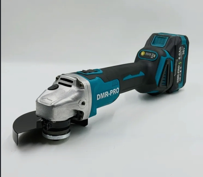 Начну с самой болгарки, собрана не плохо, в руке лежит. Из фишек: действительно бесщеточный двигатель, 4 уровня мощности, индикация заряда батареи, защита от включения при установке аккумулятора, перегруза, переразряда.