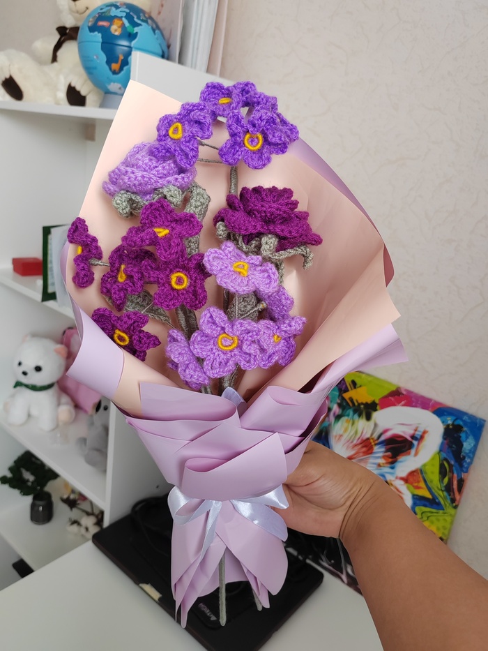 Недавно читала статью, где девушка тоже вязала цветы, комментариев было много, но мнения разделились: одни считали что это всё на любителя, другим такой подарок бы понравился. А как считаете Вы, стоит ли мне продолжать? Или цветы из пряжи плохая идея для реализации?