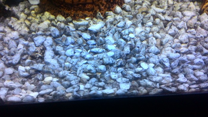 Аквариум 200 литров. живут цихлиды и птеригоплихт. Запущен 2 года назад, раньше проблема не возникала. Натуральных культурных водорослей нет, только искусственные. Такая же проблема и на грунте (фото ниже). раньше это был белоснежный мрамор.