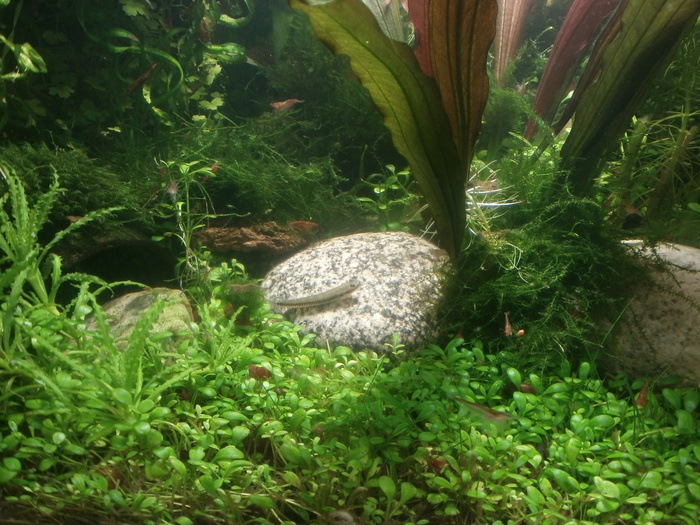 Не частый гость у нас в стране,ну или как минимум в регионе моего проживания,стфадон или неоновый бычок,держать нужно небольшой стайкой,но я пока нашел только одного,очень интересное,подвижное поведение,своего рода попрыгунчик,перемещается рывками,с одной поверxности на другую,причем не важно в какой плоскости она наxодится