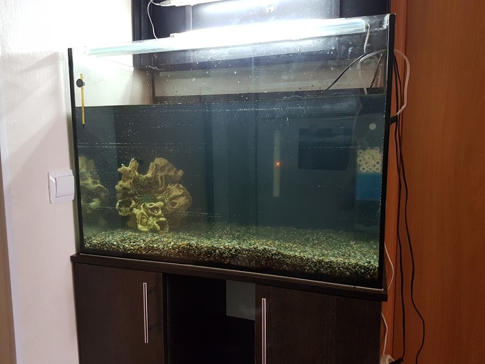 А потом мы резко осознали, что эта стремная хрень под аквой здесь совсем не нужна, она покатилась на помойку и появилась другая классная тумба. И, как я говорила, что логика и терпение, это не мое, аквариум быстренько, с частью прошлой воды и с кондиционерами, запустился. Не надо меня ругать, я сама уже знаю, к чему это привело.