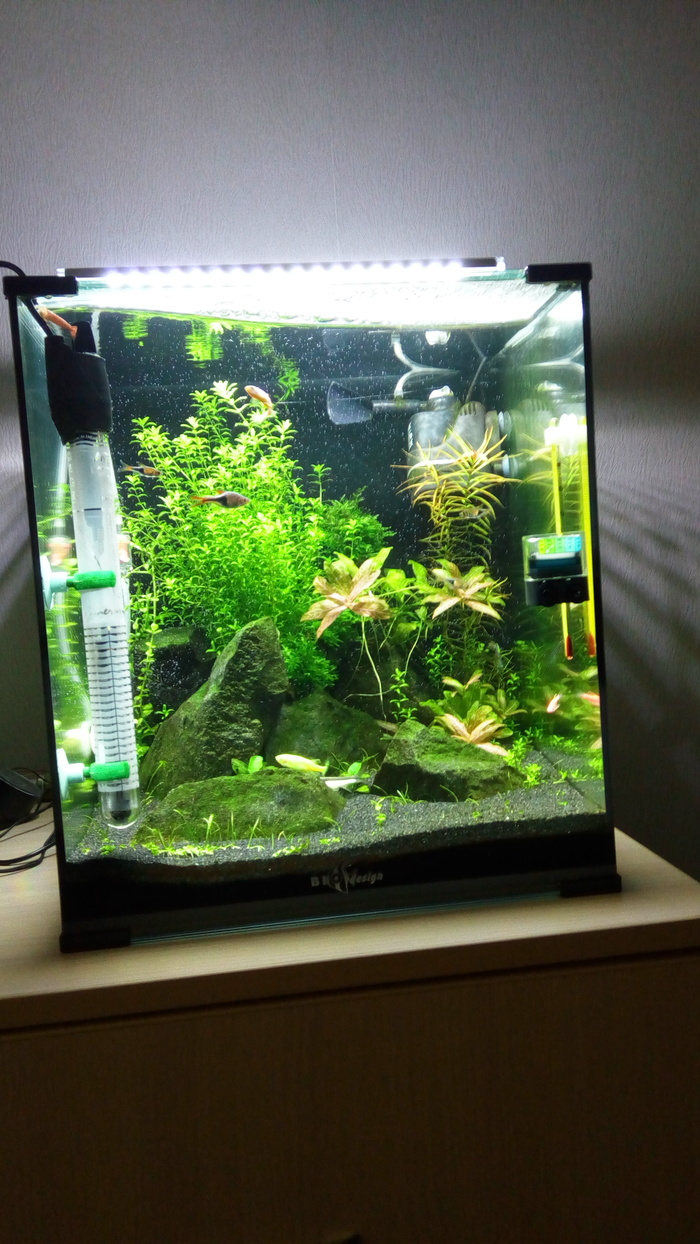Второе: аквариум может не запустить и через 2 или даже 3 месяца, покупайте хорошие тесты (хотя бы на NO2 и NH3/NH4). И не торопитесь с заселением чувствительных к параметрам обитателей, начните с гуппи.