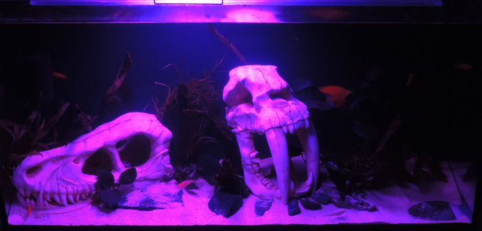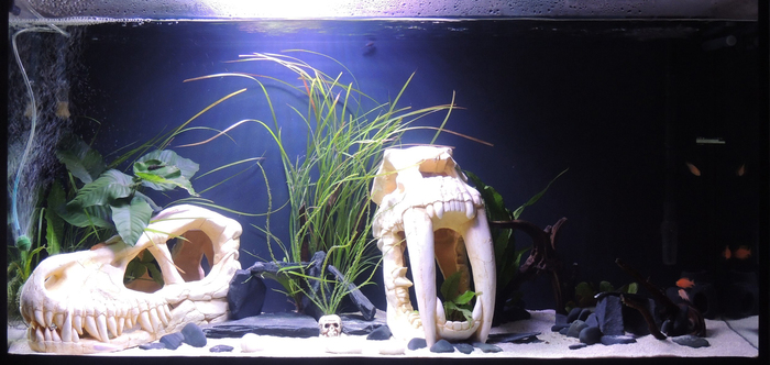 Поставили декорации, налили воду, ждем куеву тучу времени, запускаем первых рыб, вуаля: