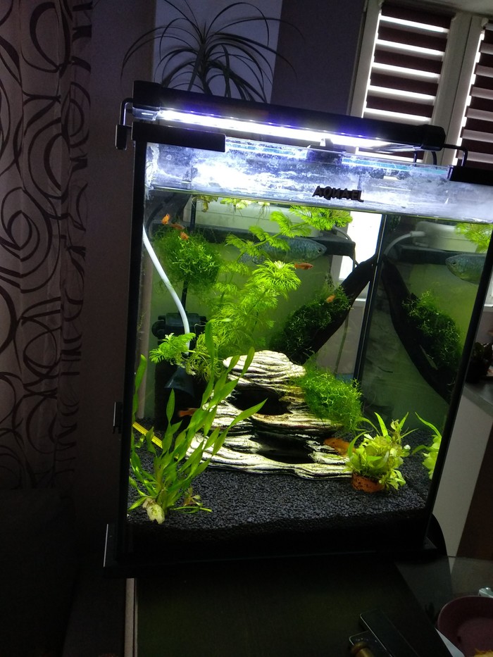 Бывалые аквариумисты скажут, свет это нехорошо! И будут совершенно правы. Я как бы догадывался об этом и раньше) Но надо же как то собственный опыт и багаж знаний получать. А посему аквас простоял напротив окна с сентября по январь! Даря мне при этом все закономерные траблы))