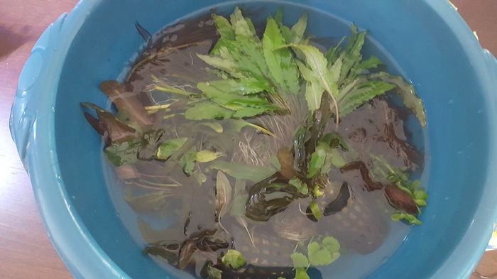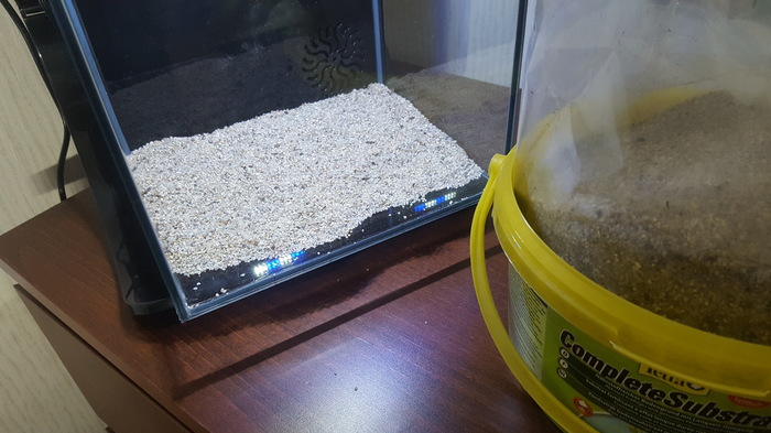 Сразу просифонили грунт,  как смогли,  поменяли 20 Л воды из 120, поменяли бы больше,  но отстояной больше нет,  а из крана лить боюсь. Сгустки выловили,  почистили стенки и фильтр. Воду согреть нечем,  не чайником же греть, прибавили батареи насколько смогли,  но это не сильно много. Т.е. если вода и согреется,  то медленно и не сильно. Обогревателя у нас нет.