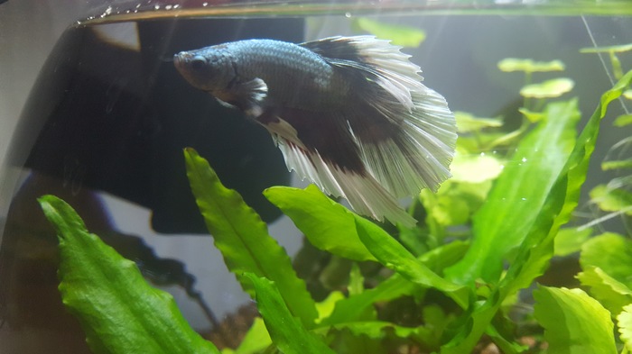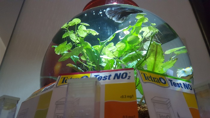 Проделываем все тоже самое со вторым аквариумом! Запускаем бойцовую рыбку, которая тут же из-за своей проворности и абсолютного отсутствия желания фотографироваться в фокусе называем Шустриком!