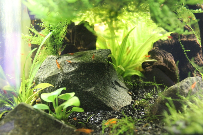 Убраны огромные камни, добавлены коряги дерева мопани. На заднем плане в правом углу стоит дубовая деревяшка, обмотанная разными мхами, там плодятся креветки.