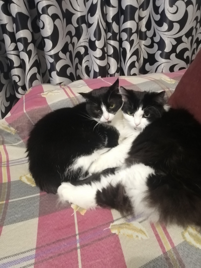История Лизы: сестра Матильды родила двух котят на закрытой территории и котята не видили людей 2 месяца, были дикие. Маму задавила машина, пришлось котят отлавливать, было пролито много человеческой крови, т.к.они сопротивлялись, но мы победили, и я Лизу забрала. Второго котёнка забрал охранник территории.
