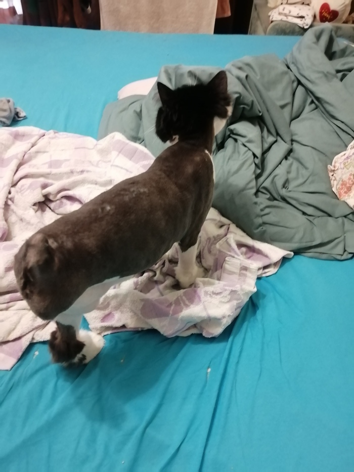 Клиника, операции и в результате у неё нет хвоста и задней лапы, что не мешает ей носится чуть ли не по стенам😂